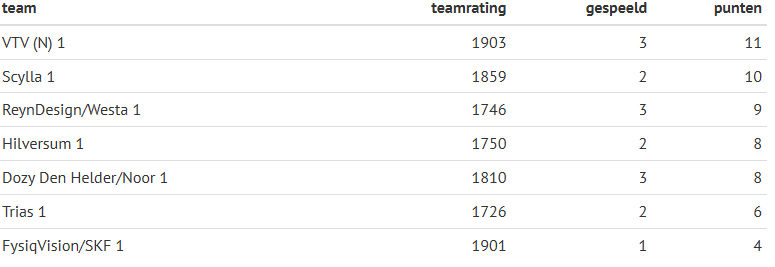 Stand eredivisie heren: