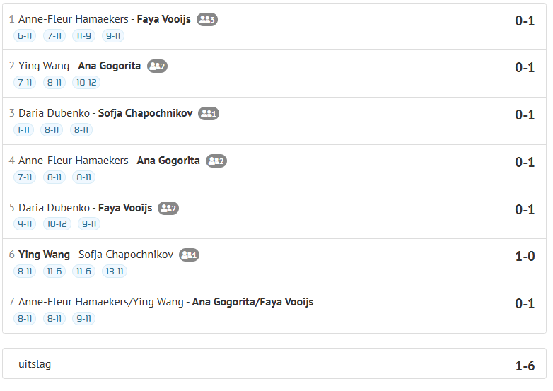 Zondagmiddag kregen de ReynDesign Westa dames met 1-6 een flinke nederlaag voor de kiezen tegen de dames van Dozy Noor uit Den Helder. Alleen Ying Wang wist na de pauze een wedstrijdpunt te verzilveren tegen Sofja Chapochnikov.