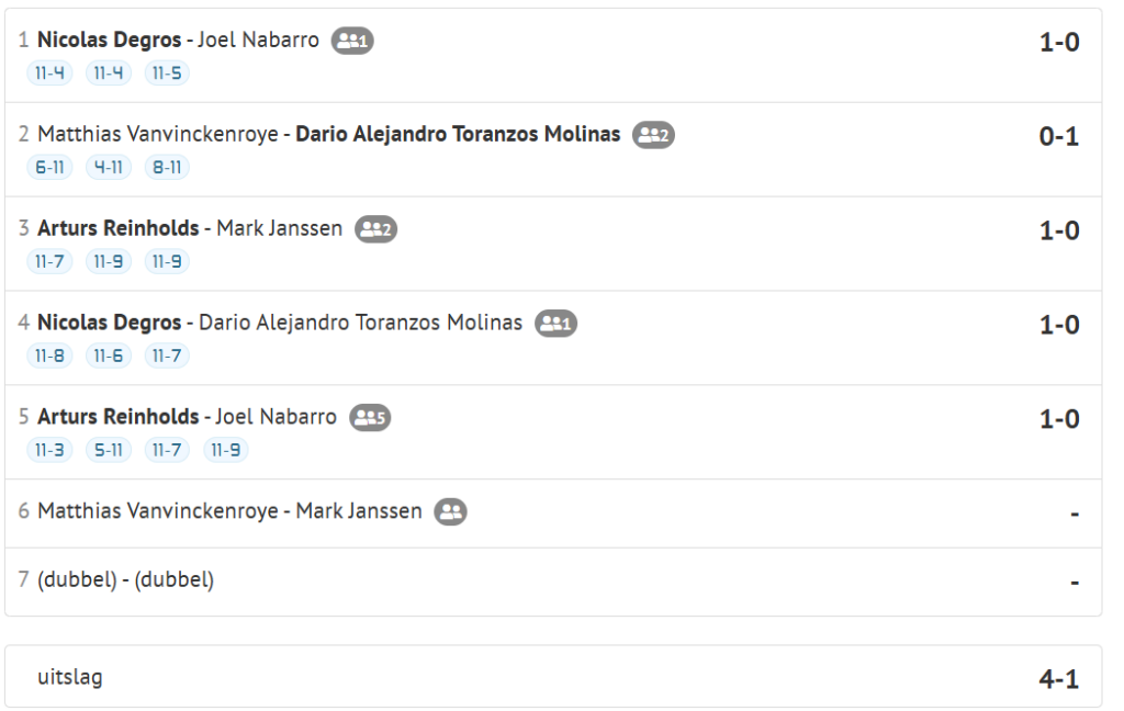 De twee Westa sterkhouders Nicolas Degros en Arthurs Reinholds maakten zondagmiddag het verschil door beiden ongeslagen te blijven.